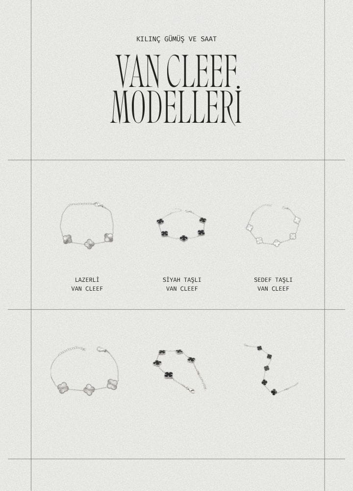 5 Motifli Lazer Zirkonlu Van Cleef Gümüş Bileklik