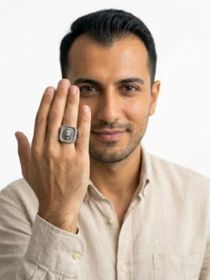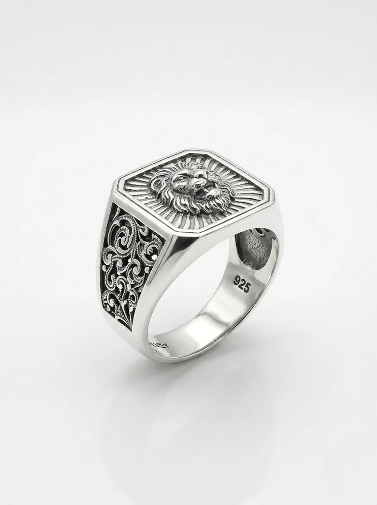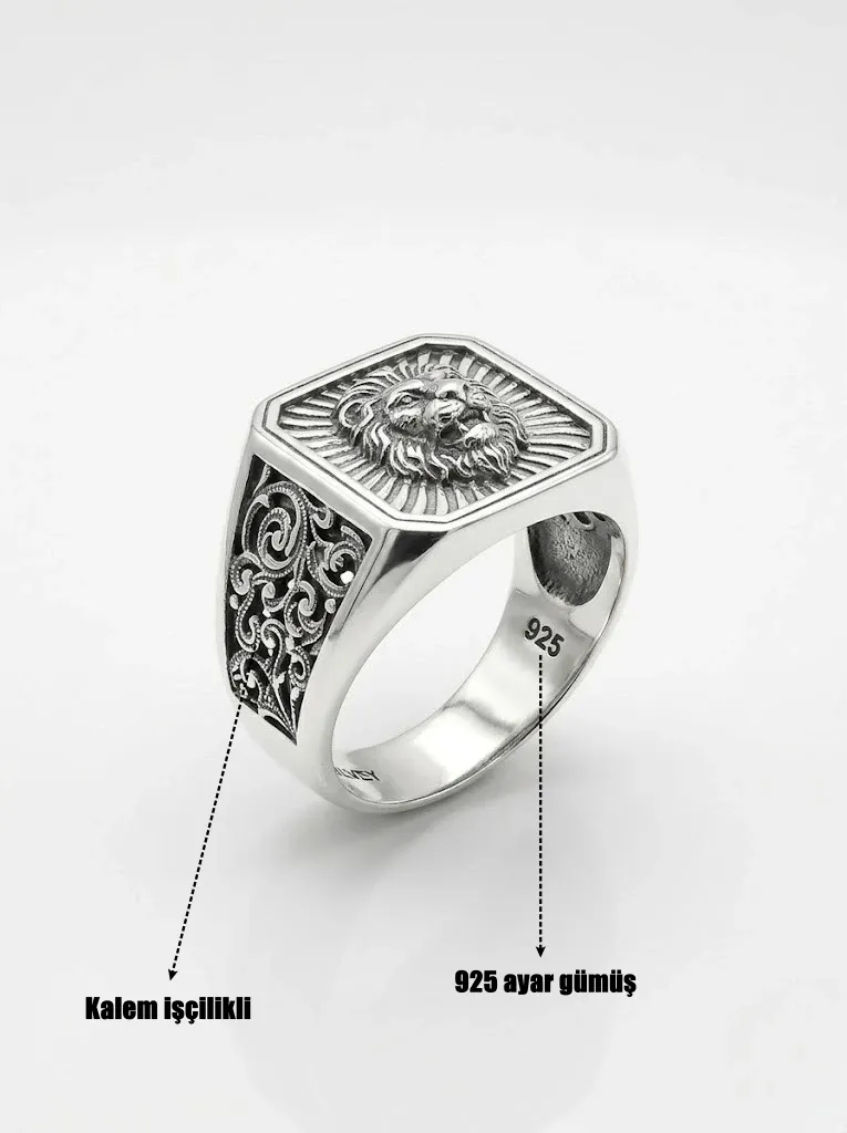 Aslan işlemeli erkek yüzük,