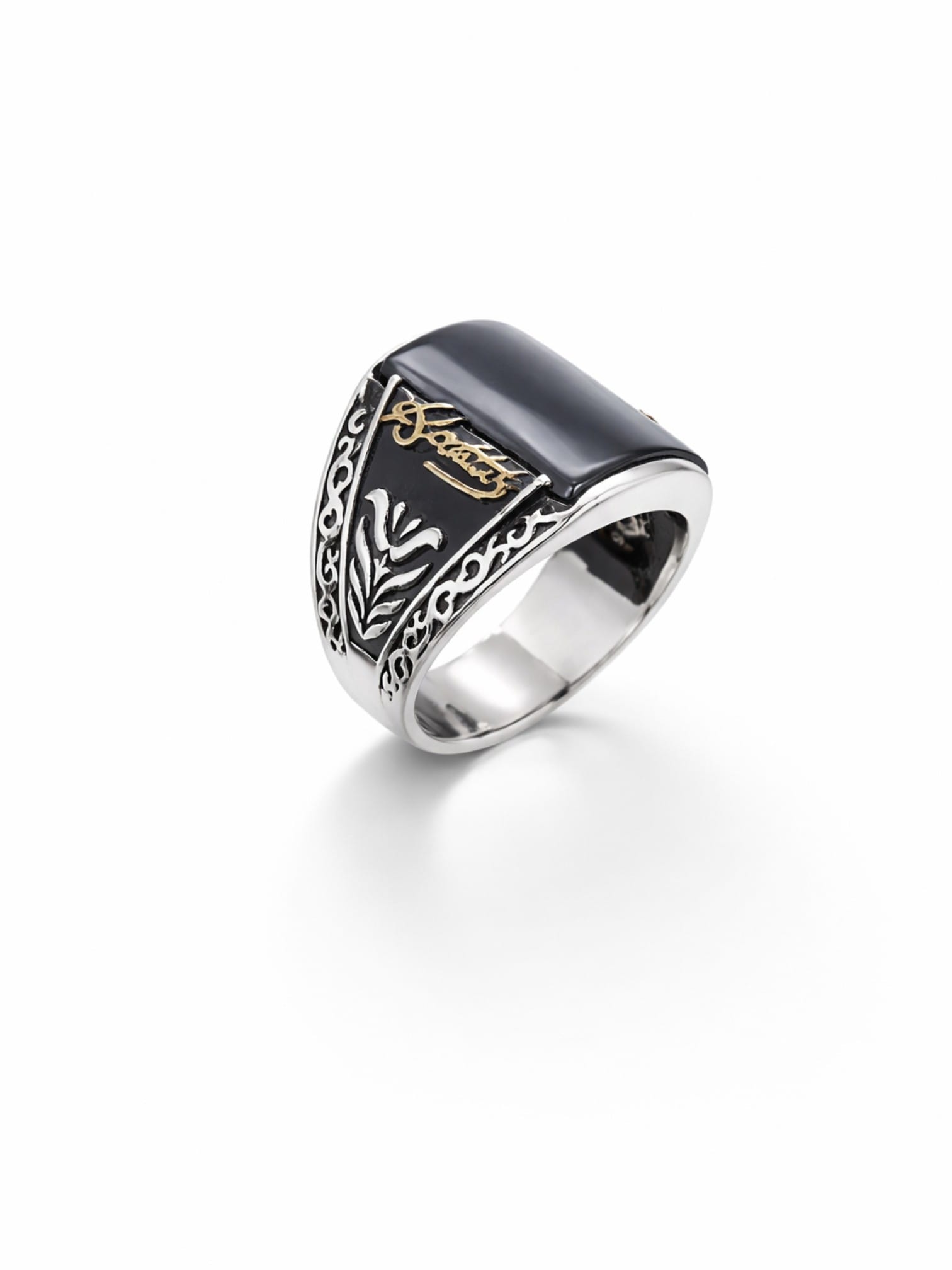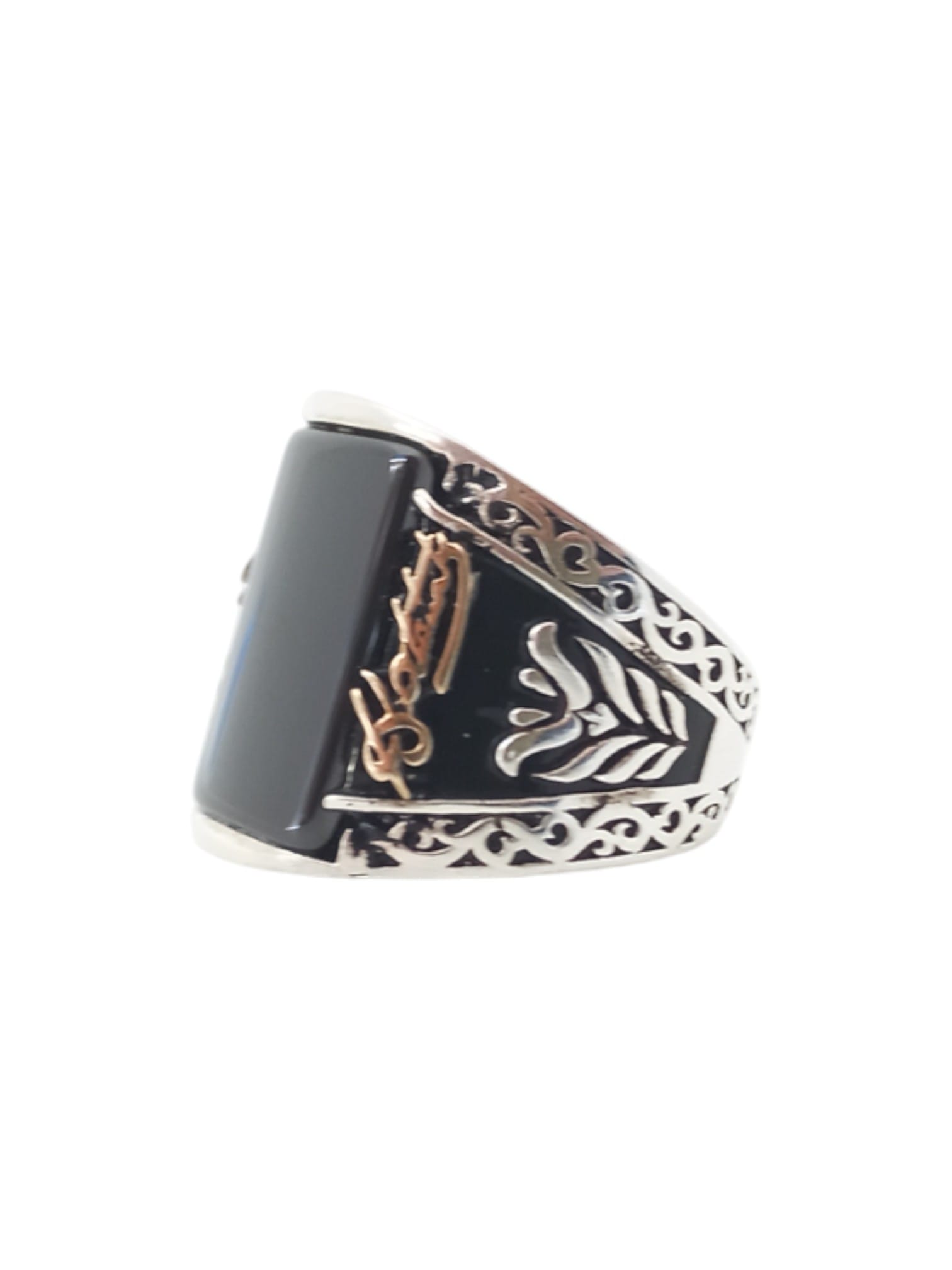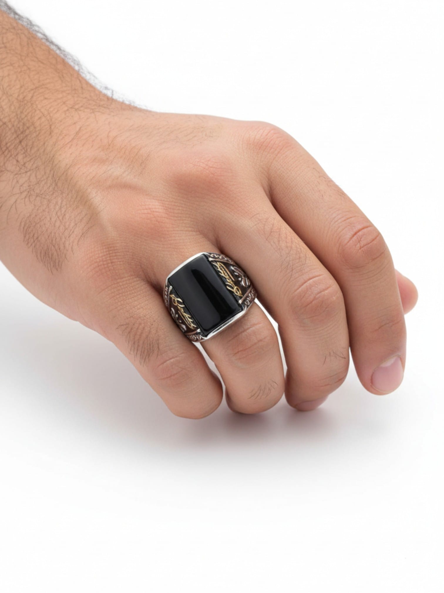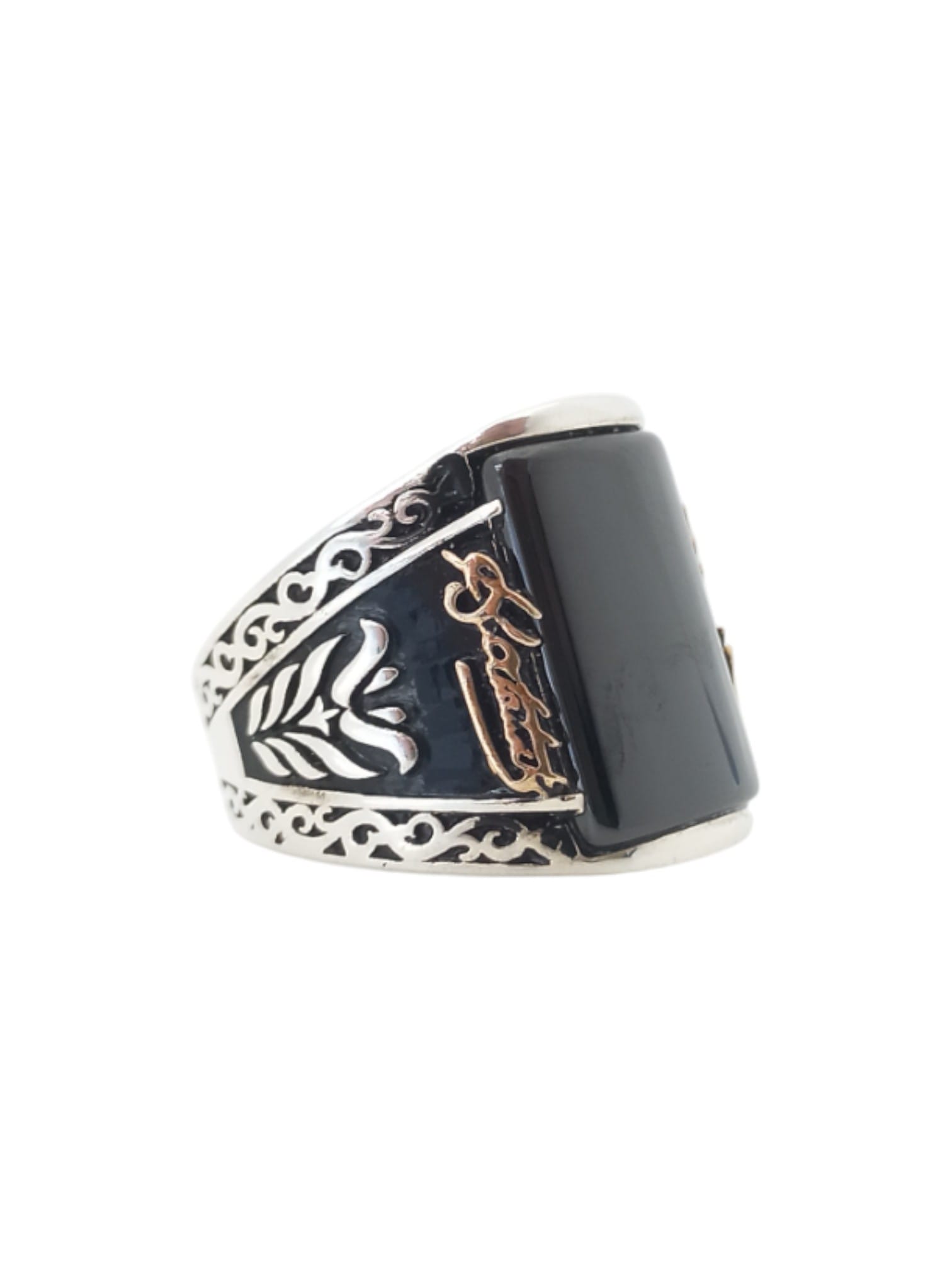 Türkiye cumhuriyetinin kurucusu, Yüce önder Mustafa Kemal Atatürk imzalı erkek yüzük modeli, Yüzükte siyah oval taş kullanılmıştır ve taşın her iki tarafında imza detayı bulunmaktadır.