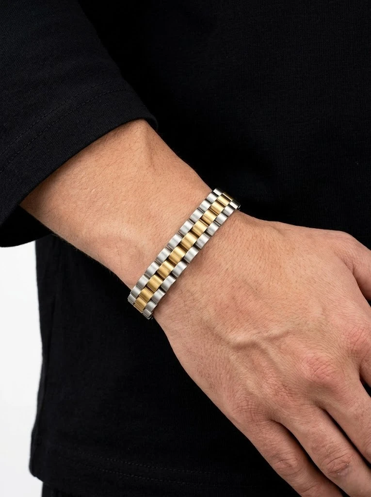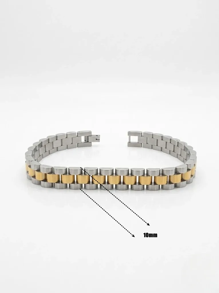 Çift renk saat kordonu modeli 316L çelik erkek bileklik,