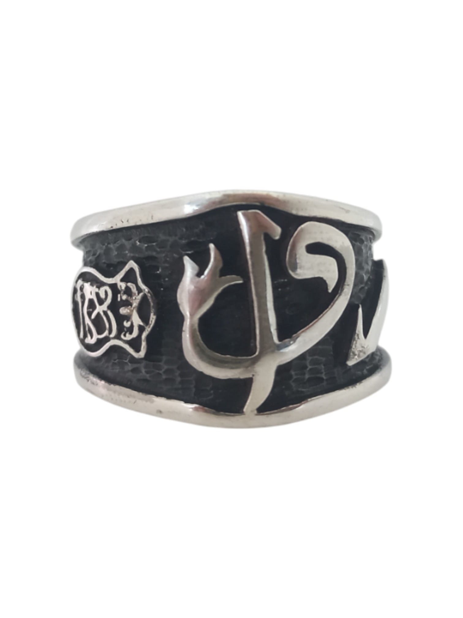 Arapça Elif-Vav harfleri işlenmiş siyah zeminli erkek yüzük modeli.