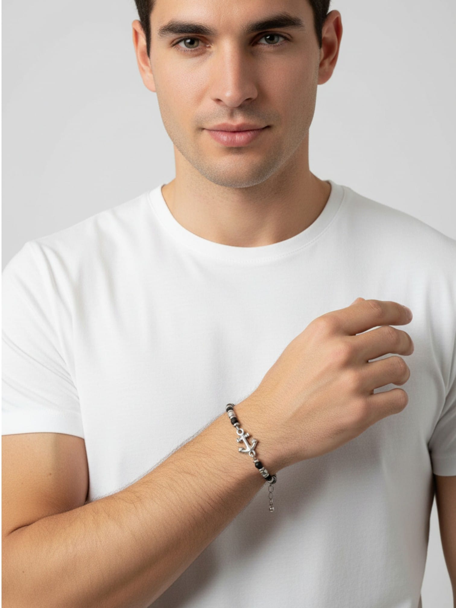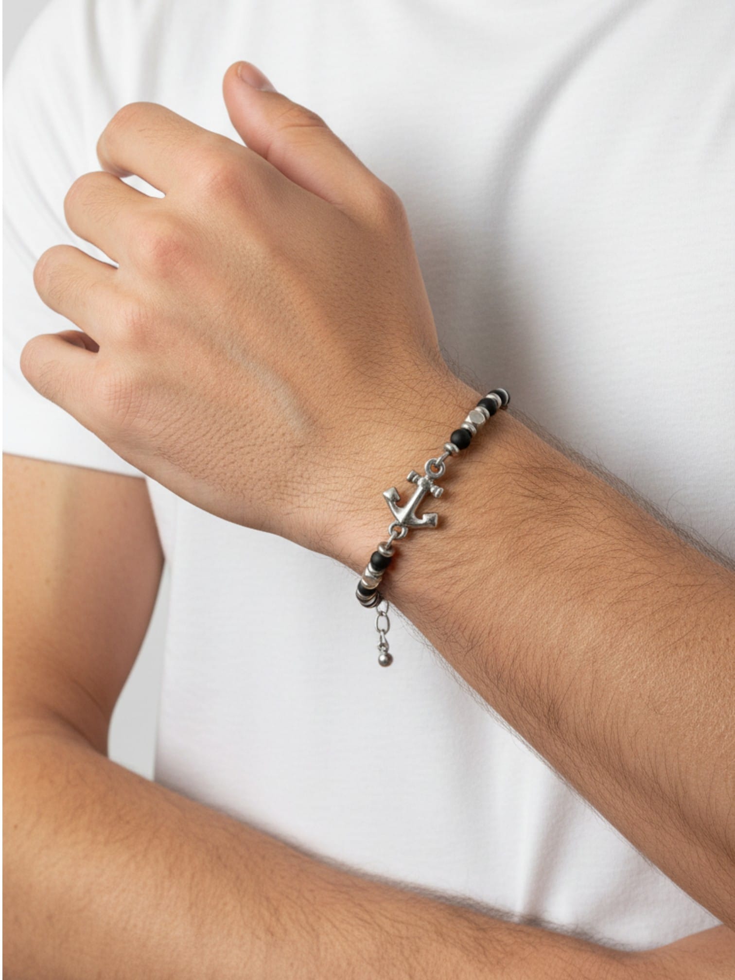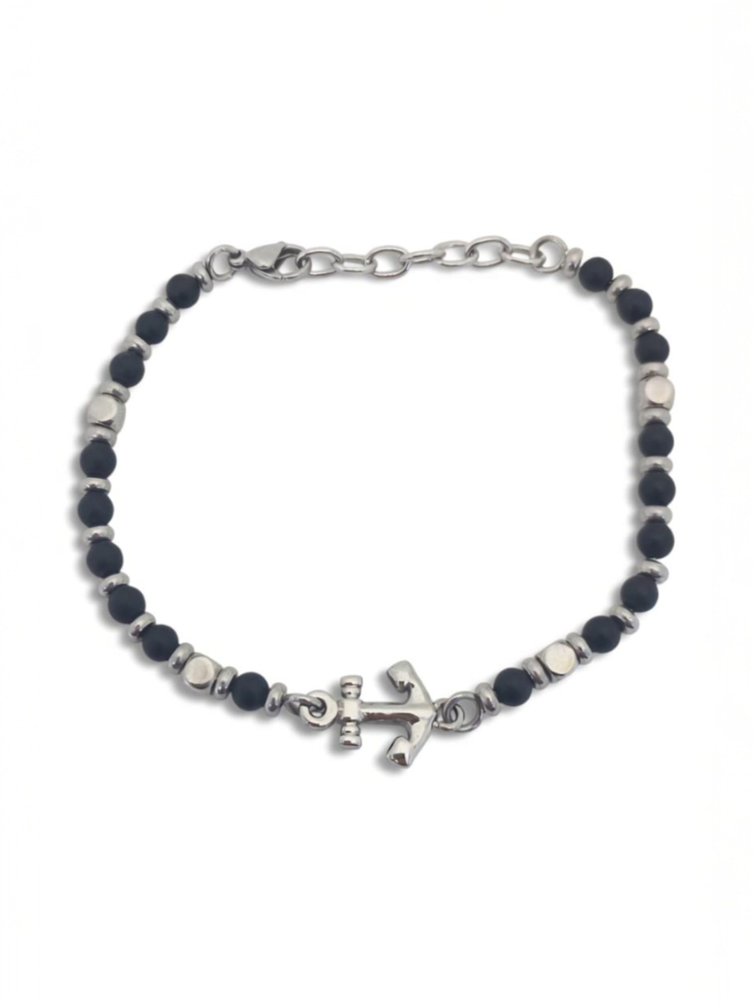 Çapa motifli siyah oniks taşlı ithal çelik erkek bileklik modeli, Tamamen 316L paslanmaz çelikten üretilmiştir.