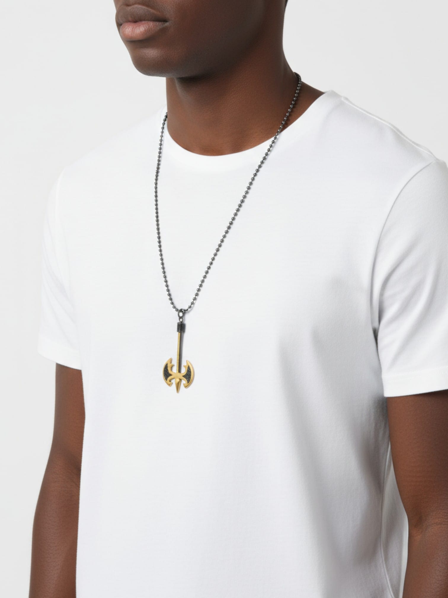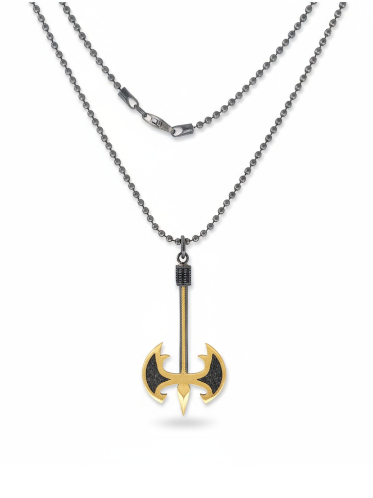 925 ayar gümüş Erkek çift taraflı balta kolye modeli , 60 cm siyah oksitli italyan top zincirli modern tasarım erkek kolye