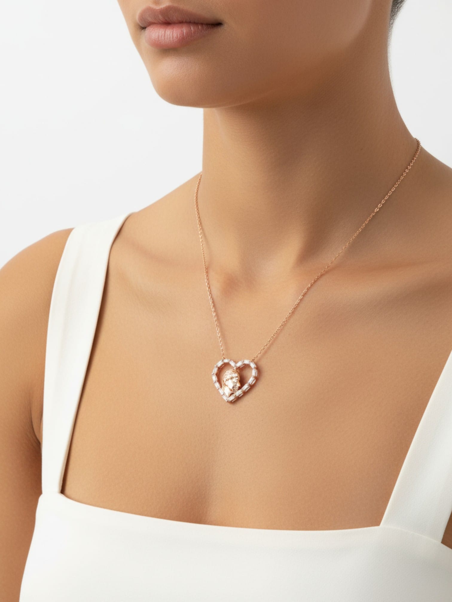 Seçilen kolye ve zincir modeline bağlı olarak duruş seviyeleri beden yapınıza göre küçük değişiklikler gösterebilir.