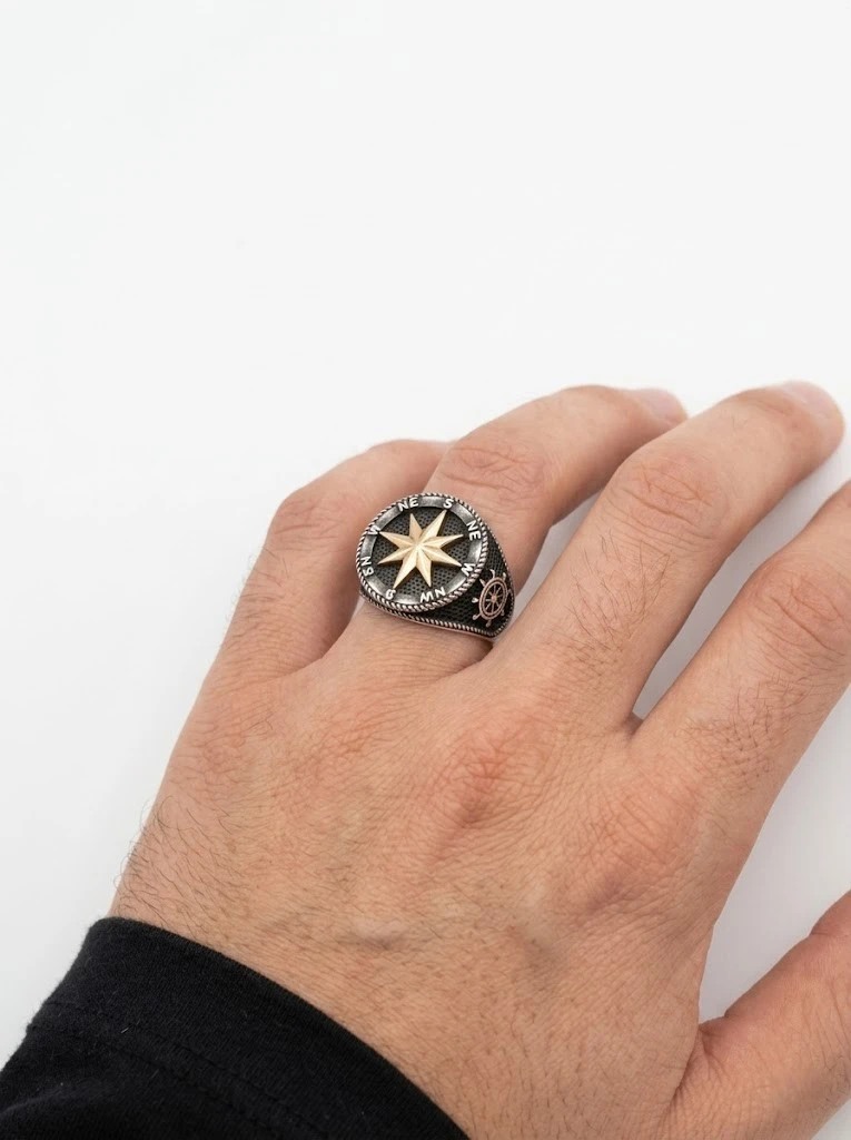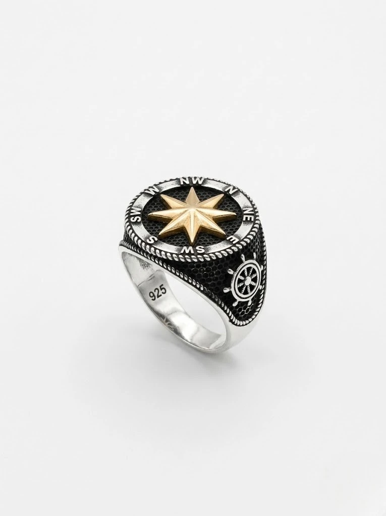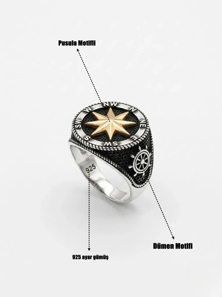 925 ayar gümüş pusula erkek yüzük,