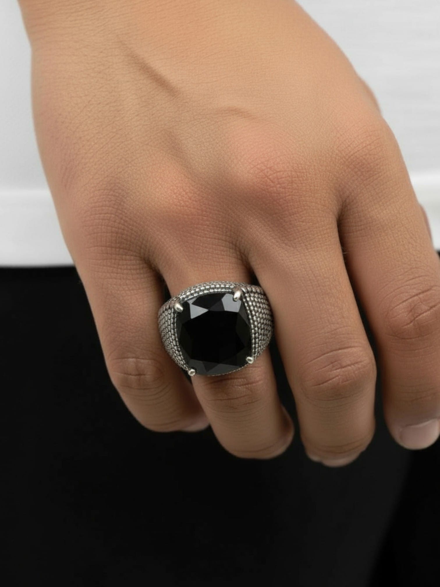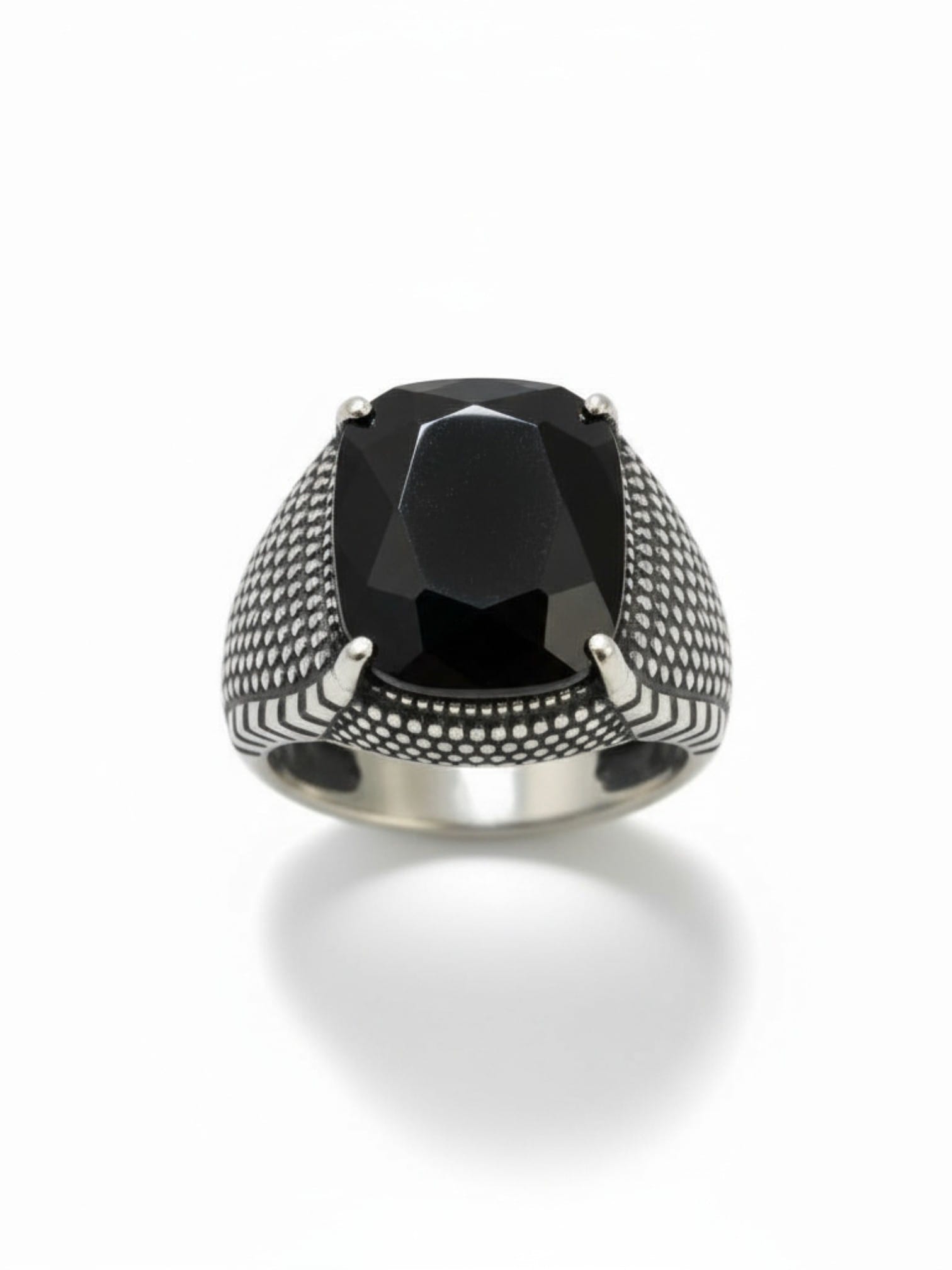 Sade motifli desenlere sahip erkek gümüş yüzük modeli