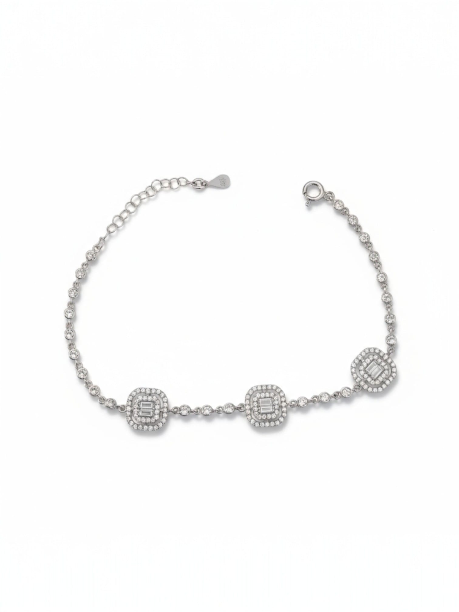 Üçlü Baget Gümüş Bileklik tamamen 925 ayar gümüştür ve Taş cinsi olarak doğal zirkon taşları kulllanılmıştır