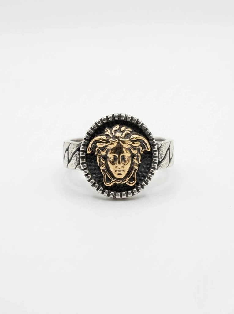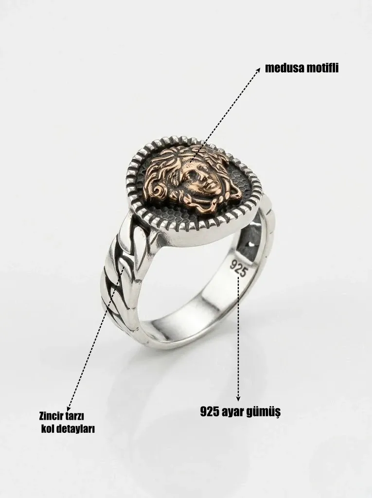 Medusa işlenen bu model gümüş erkek yüzük modelleri arasında oldukça popüler bir modeldir.