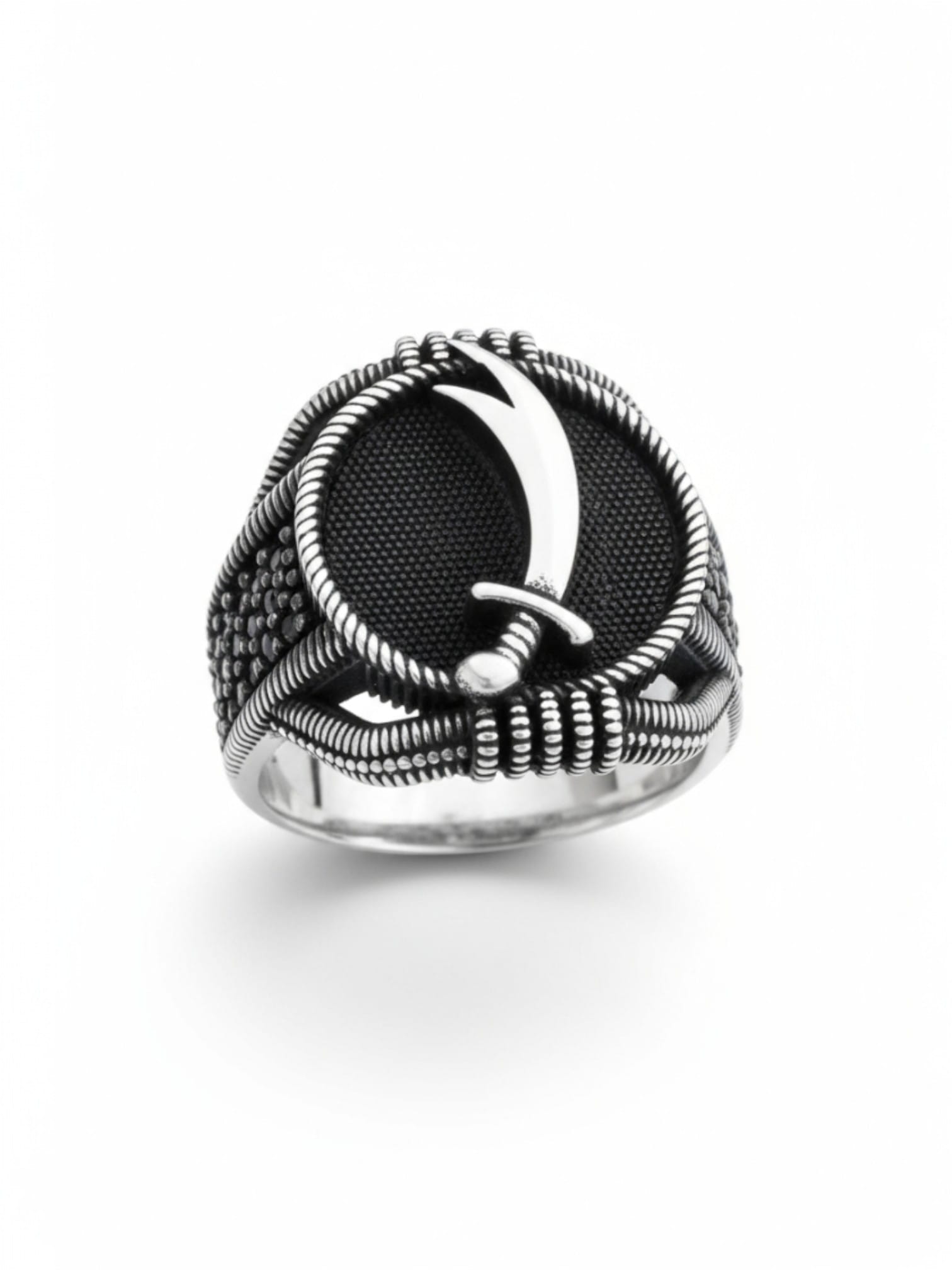 Siyah oksitli , 925 ayar gümüş , Zülfikar Erkek yüzük