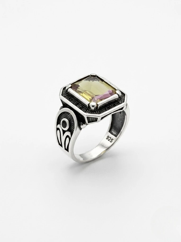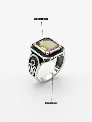Doğal zultanit taşlı renk değiştiren erkek yüzük modeli