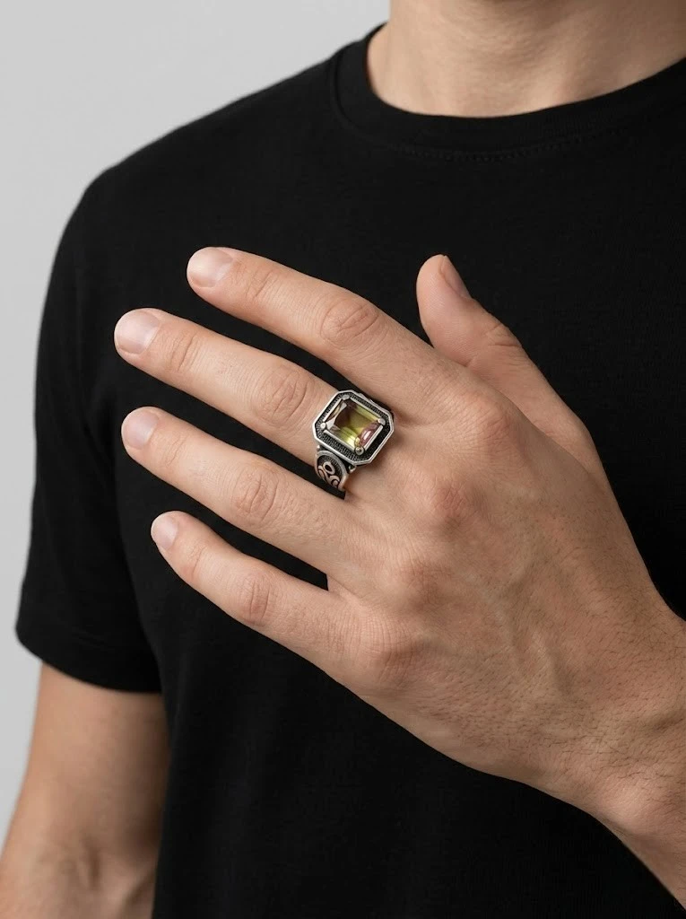 7 farklı renk değiştiren mucizevi zultanit taşlı erkek yüzük modeli